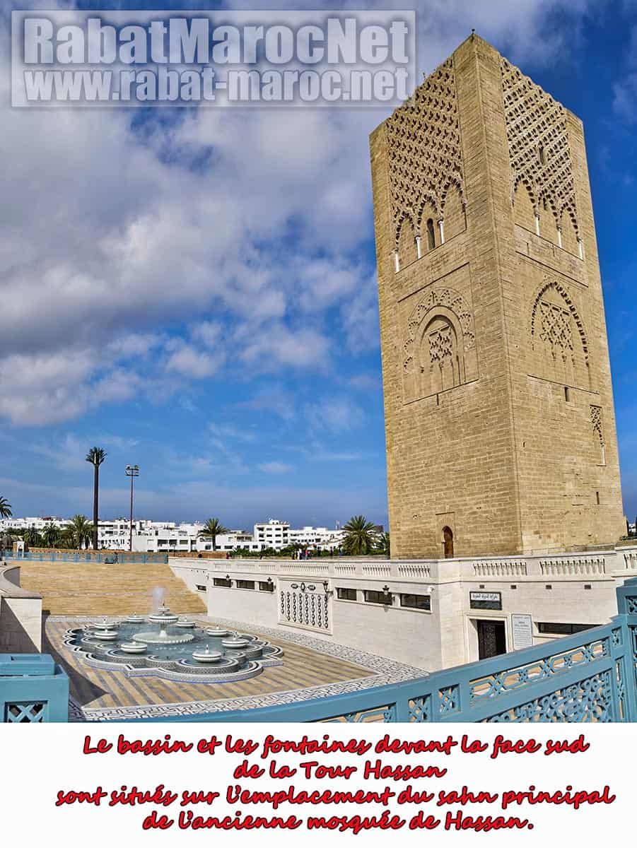 De la grandiose mosquée, dont il ne subsiste que la tour-minaret, plus rien ou presque n’a résisté au temps. Quelques pans de murs en pisé reconstitués à plusieurs reprises, les colonnades que l’on a redressées mais dont plusieurs morceaux proviennent de sites extérieurs à la Tour Hassan.