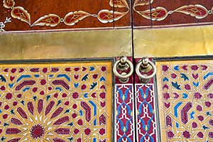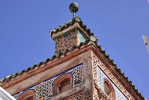 La discrète Zaouia TIJANIA AL ATIKA, rue Harrarine, remarquable par ses zelliges de couleurs et panneaux d’entrelacs.