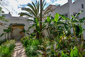 PARC MOULAY SLIMANE. En plein coeur de la médina, près de la mosquée du même nom, un petit jardin, avec une végétation luxuriante au milieu des souks agités.